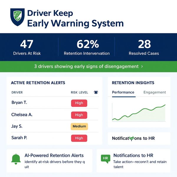 Driver Keep’s Early Warning System uses AI to detect disengagement patterns—so your team can act early, personalize support, and retain your best drivers